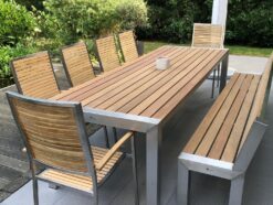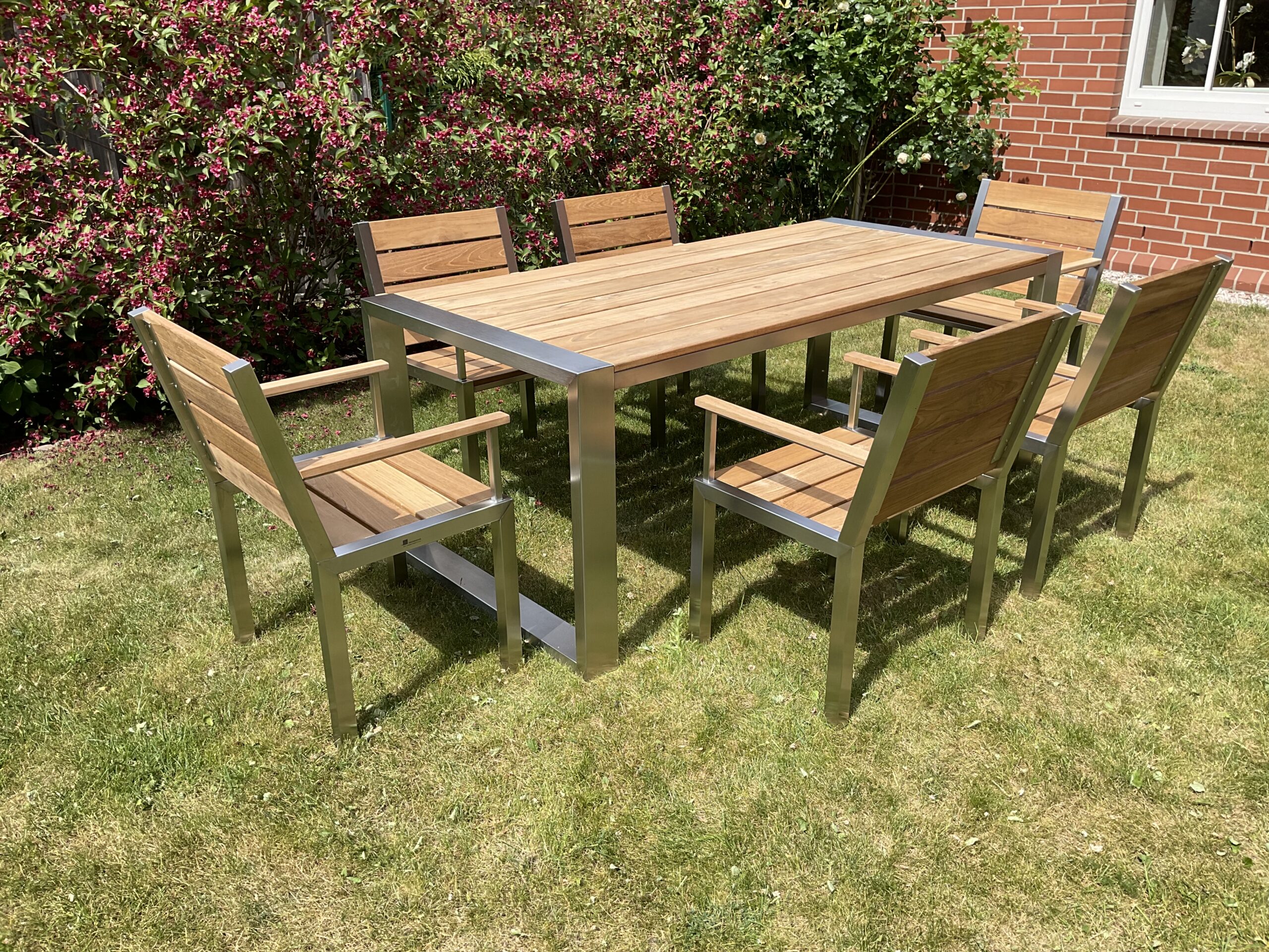 Unsere hochwertigen Gartentische nach Maß stehen für zeitloses Design, außergewöhnliche Stabilität und höchste Qualität. Edelstahl sorgt für klare Eleganz und ist langlebig sowie pflegeleicht, während Teakholz eine warme, natürliche Note hinzufügt. So entsteht ein konfigurierter Edelstahl Gartentisch, der nicht nur praktisch, sondern auch ein echtes Highlight in Ihrem Garten oder auf Ihrer Terrasse ist.